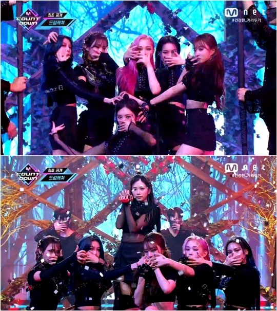 Dreamcatcher with lovely voices appeared. They also gave a pleasurable gift to the ears of “M Countdown” viewers through the metal rock sound on the moombahton rhythm and lyrics directing towards malicious commenters.