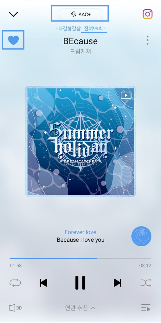 Click the ‘search’ icon at the bottom > search for 드림캐쳐 & click on their name to go to the artist page > like the page. Scroll down, click the play icon next to the title track to play it. Like the song & make sure it is not on repeat!