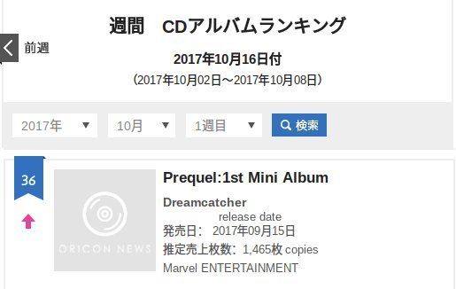 [ORICON] Japanese version of PREQUEL ranks 36th on Oricon’s weekly chart for the 1st week of OCT (10/02-10/08) with 1,465 copies sold