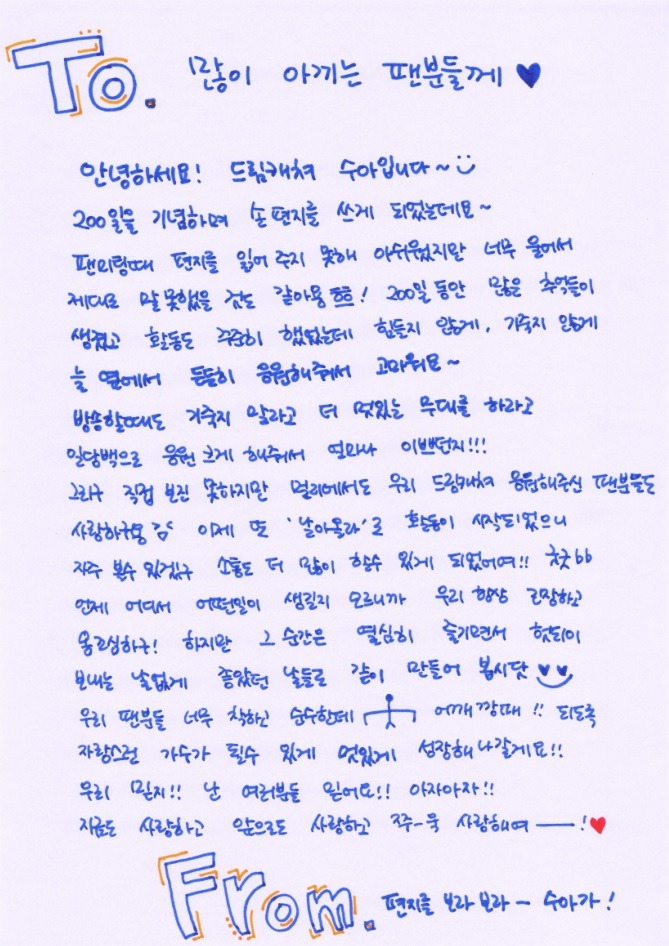To commemorate the 200th day, I wrote a handwritten letter~